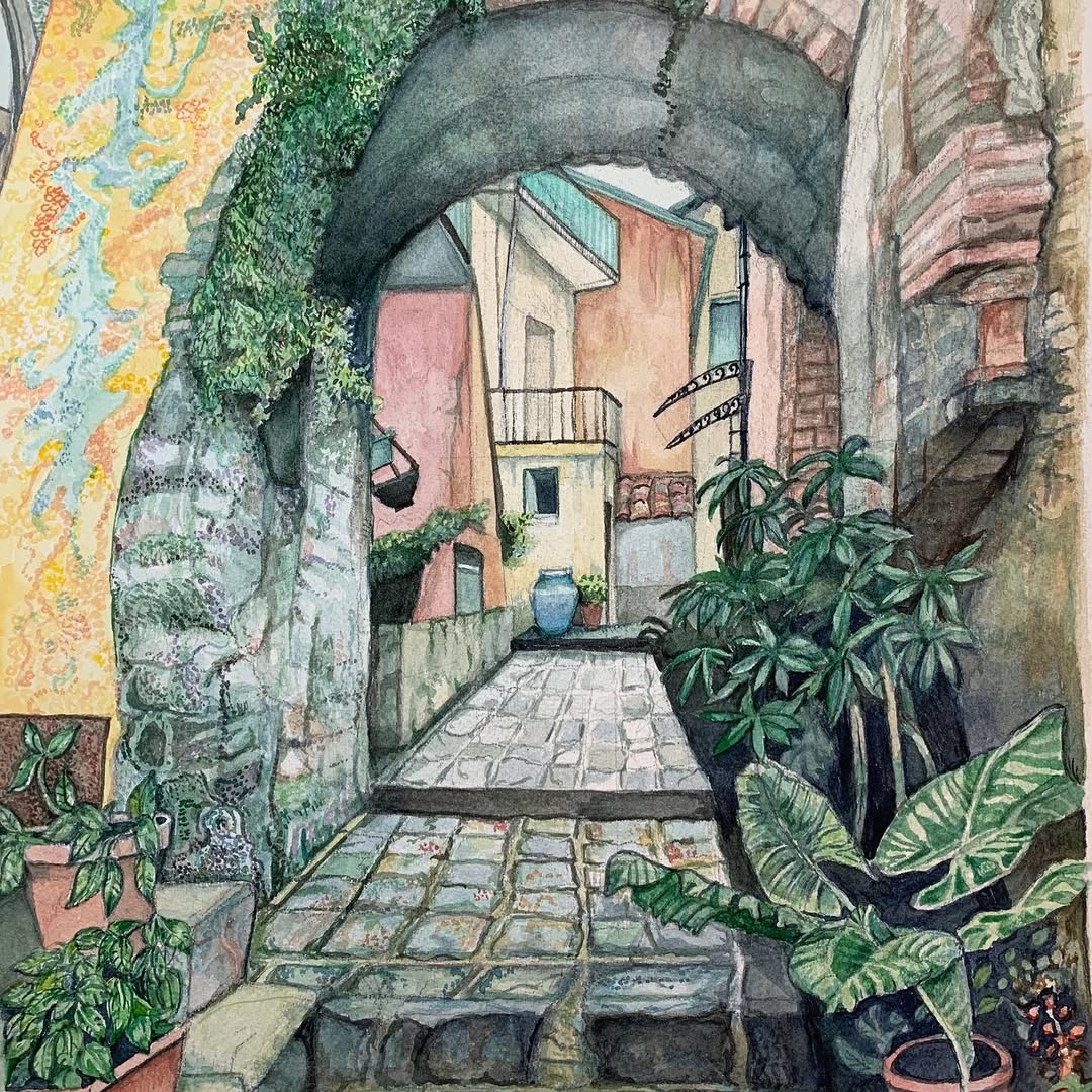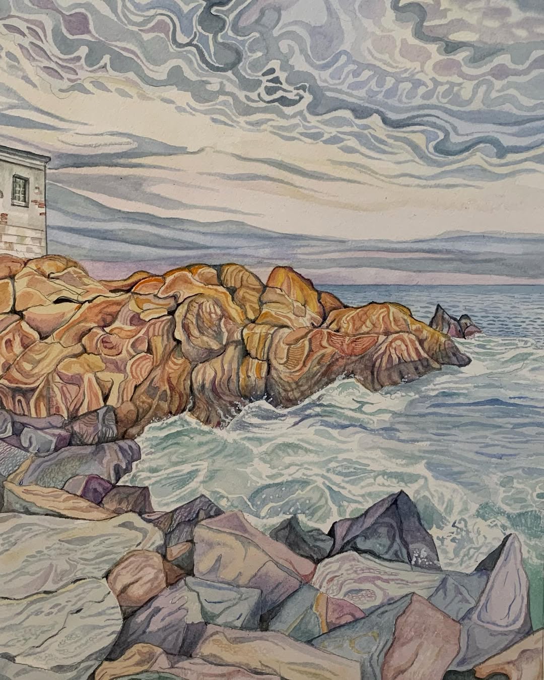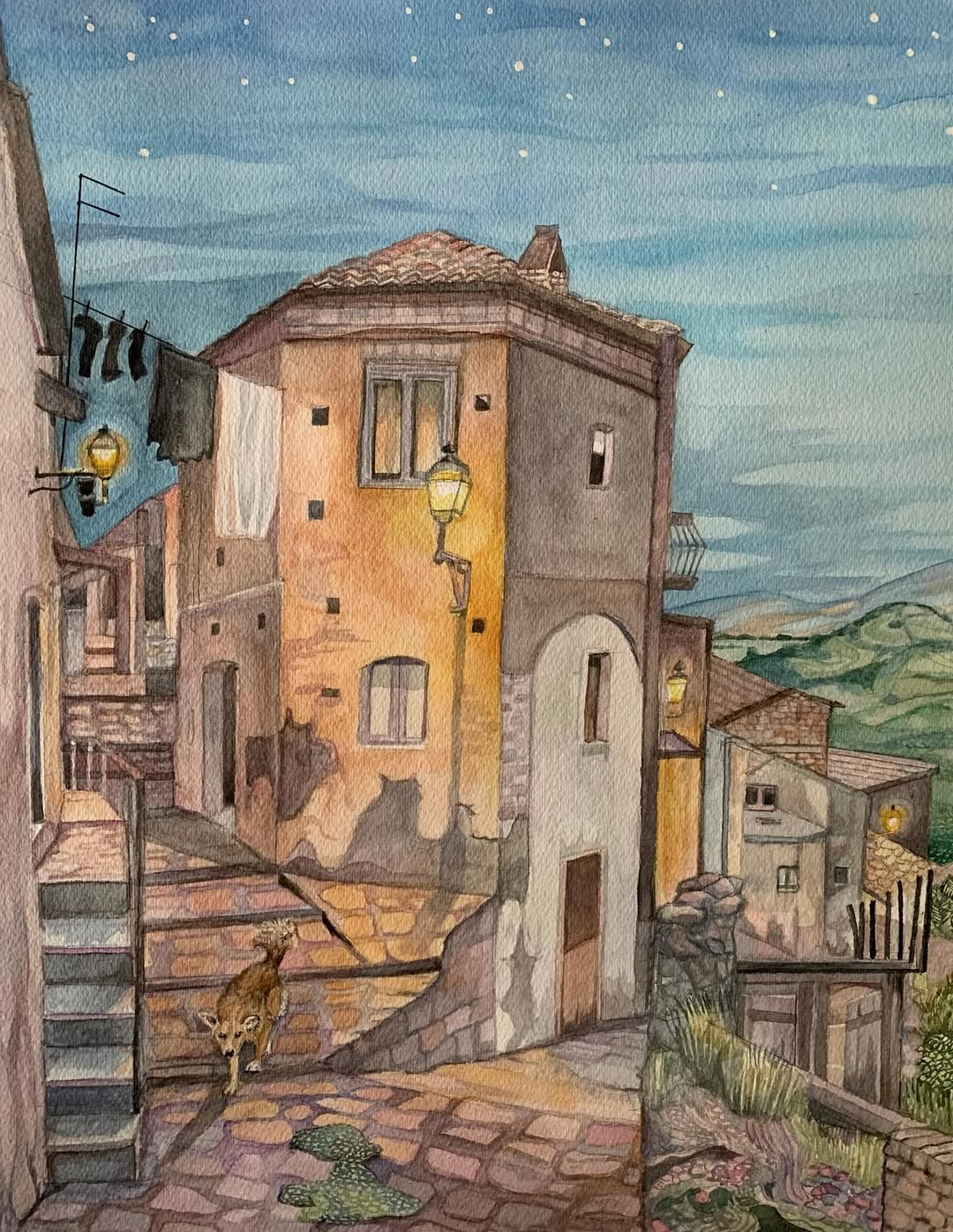 In 2022, the Hemphill Family Foundation awarded her the “Art Adventure Grant” which she used to spend two months in Roccanova, Basilicata, Italy, and create a series of watercolors based on her stay in this remote hilltop town. In August 2024, the Newburyport Art Association offered her the coveted featured Artist exhibition.