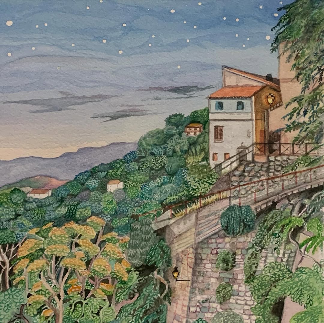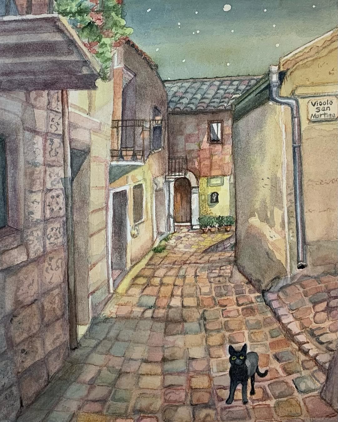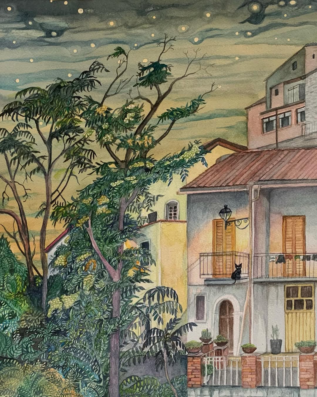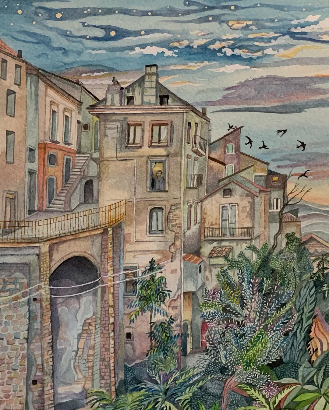 In 2022, the Hemphill Family Foundation awarded her the “Art Adventure Grant” which she used to spend two months in Roccanova, Basilicata, Italy, and create a series of watercolors based on her stay in this remote hilltop town. In August 2024, the Newburyport Art Association offered her the coveted featured Artist exhibition.